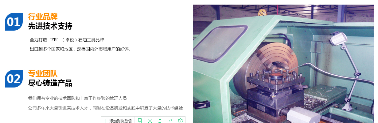 德州卓銳石油機械有限公司成立于2008年10月,專業(yè)生產(chǎn)螺桿鉆具拆裝架、無磁懸掛短節(jié)、螺桿鉆具配件、螺桿清膠機、PDC平面軸承、可調(diào)鉆具配件、360度全旋轉(zhuǎn)拆裝架、螺桿鉆具整機試驗臺、螺桿鉆具馬達(dá)試驗臺、渦輪鉆具配件、等壁厚螺桿定子加工機床、等壁厚螺桿鉆具等石油鉆井工具,打撈工具,固井工具及其配件。公司確立并始終堅持不懈地發(fā)揚“誠信,務(wù)實,高效,創(chuàng)新”的企業(yè)精神全力打造“ZR”(卓銳)石油工具品牌。業(yè)務(wù)實現(xiàn)了快速發(fā)展,并得到業(yè)內(nèi)人士的廣泛認(rèn)同,成為石油裝備制造業(yè)一顆璀璨的新星。